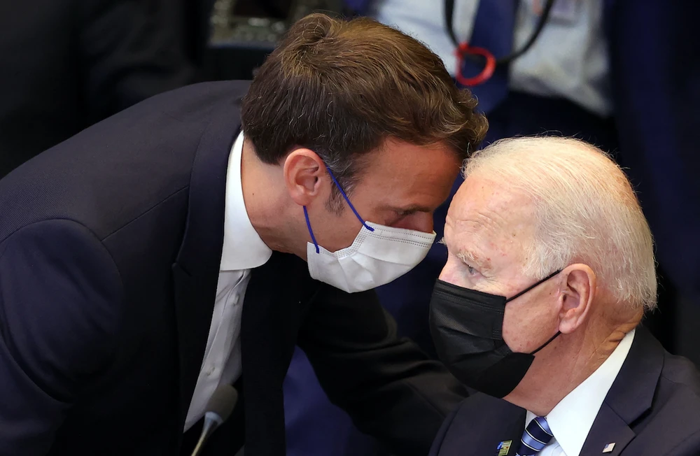 Tổng thống Pháp Emmanuel Macron và Tổng thống Mỹ Joe Biden. Ảnh: Dursun Aydemir/AFP