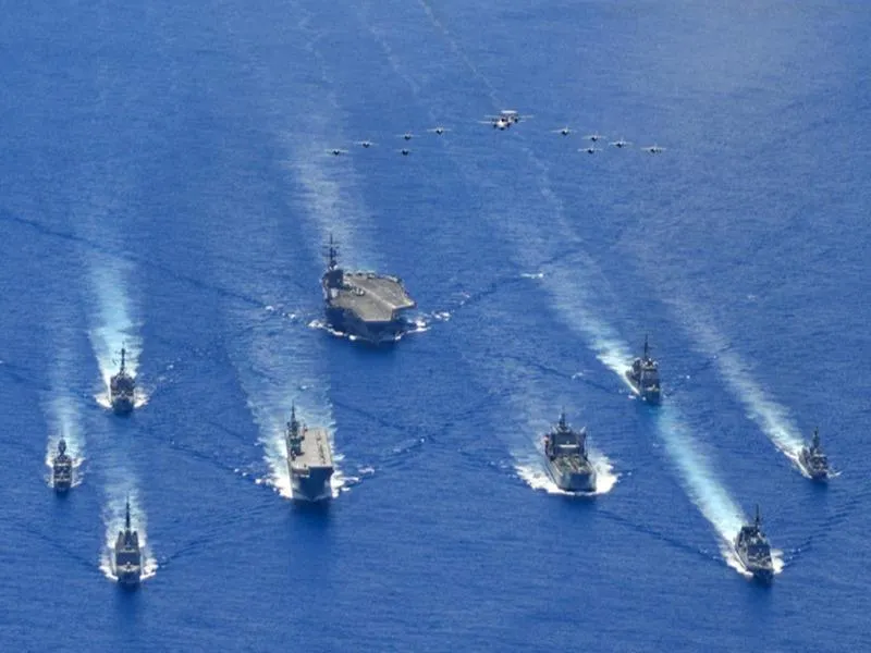 Nhóm tàu tác chiến của Mỹ-Úc-Nhật tập trận chung hồi tháng 7. Ảnh: HẢI QUÂN MỸ