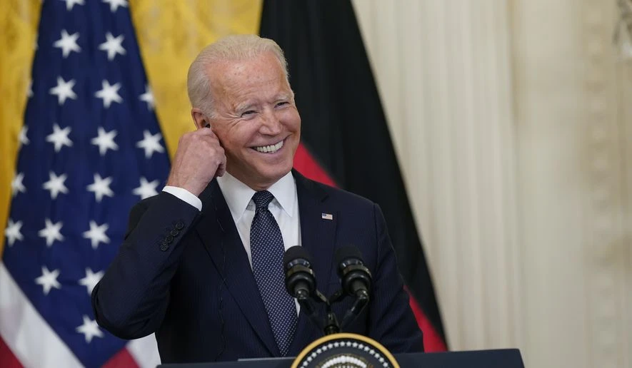 Tổng thống Mỹ Joe Biden phát biểu trong buổi họp báo với Thủ tướng Đức Angela Merkel tại Nhà Trắng, ngày 15-7. Ảnh: AP