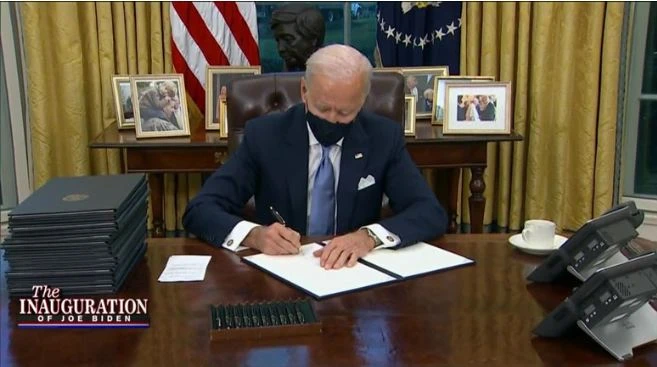Ông Biden đang ký một loạt các lệnh hành pháp, biên bản ghi nhớ và chỉ thị cho các cơ quan, bao gồm những bước đầu tiên để xử lý đại dịch COVID-19, đảo ngược chương trình nghị sự về môi trưởng và hủy bỏ một số chính sách có chữ ký của cựu Tổng thống Donald Trump nhằm phục hồi nền kinh tế chậm chạp và khôi phục các nỗ lực liên bang nhằm thúc đẩy sự đa dạng.