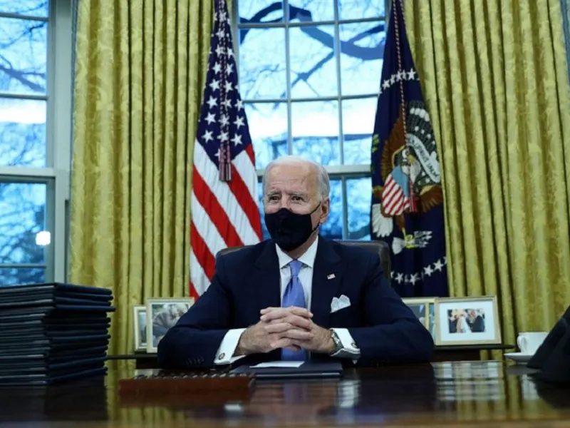 Tân Tổng thống Mỹ Joe Biden vào Phòng Bầu dục (Nhà Trắng) sau lễ nhậm chức hôm 20-1. Ảnh: REUTERS