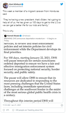 Kể từ khi chính thức nhậm chức, Tổng thống Biden đã ra lệnh chấm dứt việc xây dựng bức tường biên giới với Mexico và bãi bỏ chính sách giữ người xin tị nạn vào Mỹ tại Mexico cho đến khi yêu cầu của họ được xử lý.