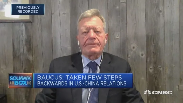 Ông Max Baucus - cựu đại sứ Mỹ tại Trung Quốc - phát biểu trên CNBC hôm 8-10. Ảnh: CNBC