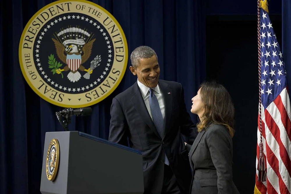 Bà Julie Rodriguez và cựu Tổng thống Barack Obama. Ảnh: AP