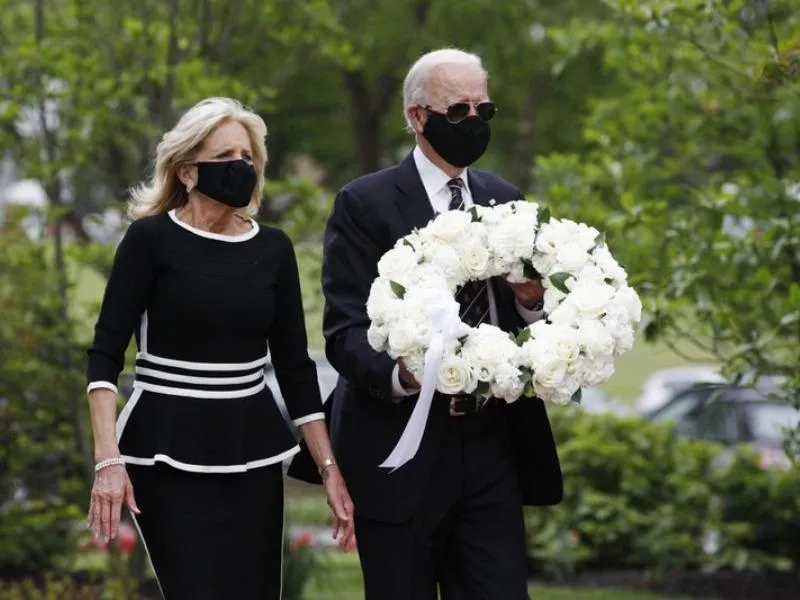 Ngày 25-5, ông Joe Biden và phu nhân đã xuất hiện tại đài tưởng niệm cựu binh ở bang Delaware, quê nhà của ông, để đặt vòng hoa nhân Ngày Tưởng niệm (Memorial Day).