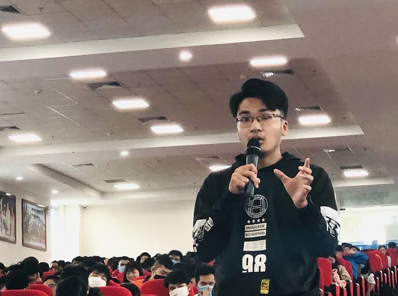 Sinh viên thẳng thắn đặt những câu hỏi hóc búa đến các vị diễn giả về khâu tuyển dụng. Ảnh: UNI