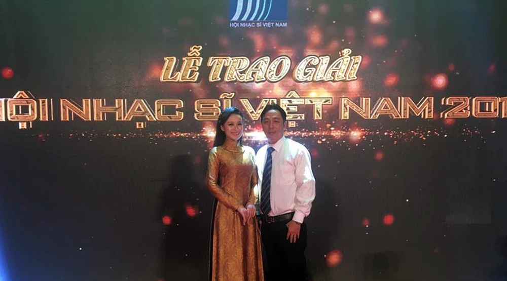 Đinh Trung Hà tại lễ trao giải của Hội Nhạc sĩ Việt Nam năm 2017.
