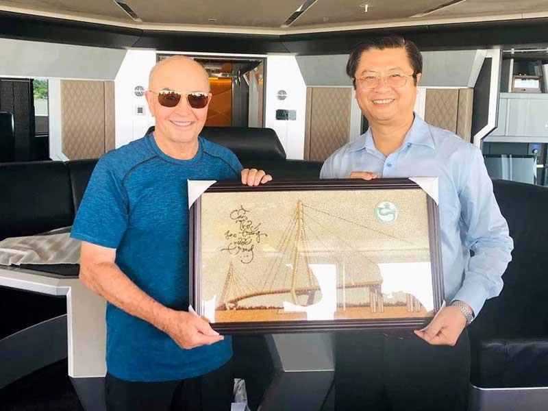Phó Chủ tịch UBND TP Cần Thơ Trương Quang Hoài Nam đón ông Joe Lewis trong lần đầu tỉ phú này đến Cần Thơ. Ảnh: C.GIANG