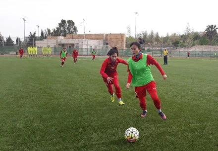 Tuyển nữ Việt Nam hăng say tập luyện trên đất Jordan. Ảnh: ANH NHẬT