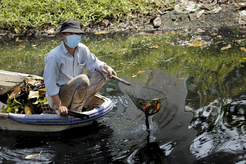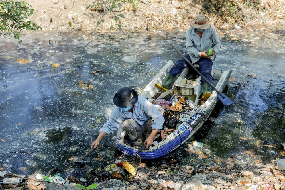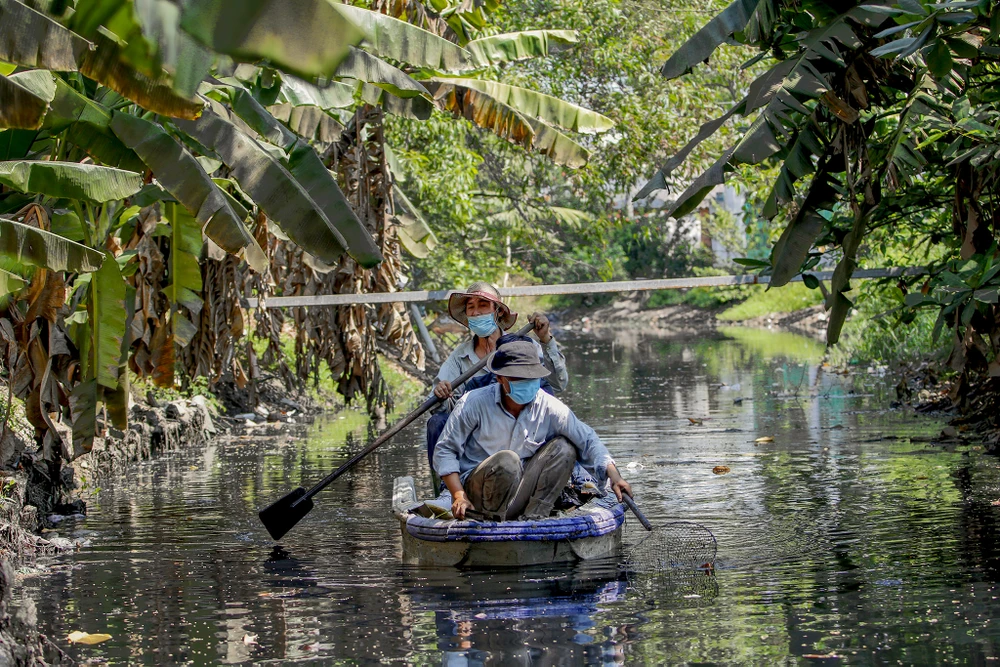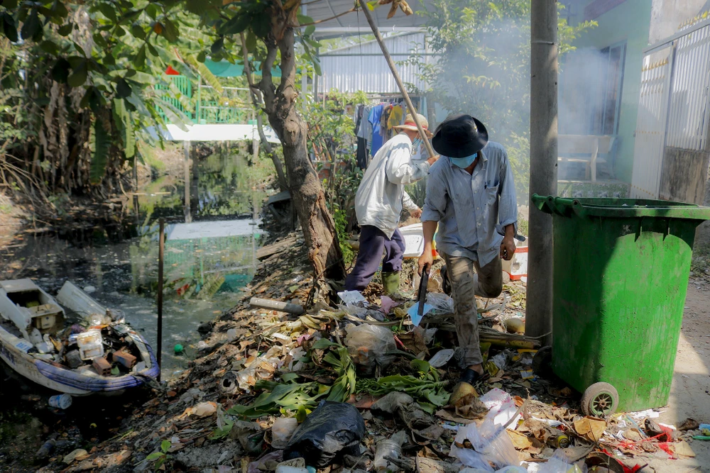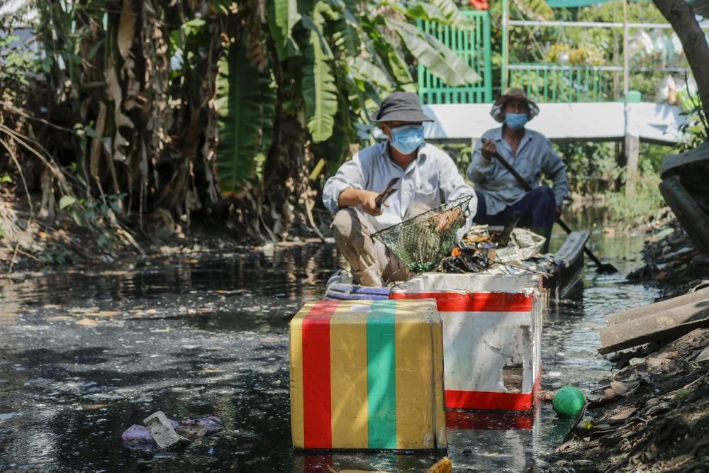 Gần 4 năm nay, ông Hồ Chí Cường (ngụ ấp 1, xã Bình Chánh, huyện Bình Chánh, TP.HCM) cùng người cháu trai liên tục ra rạch Ông Đồ để dọn rác, khơi thông dòng chảy.