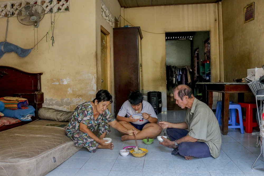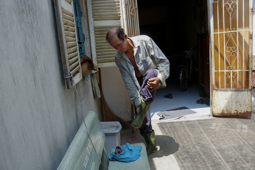 Trở về nhà, ông Cường tháo đôi giày ống, vệ sinh để chuẩn bị ăn cơm. Nhiều năm nay, không chỉ gia đình mà cả hàng xóm xung quanh đã không còn xa lạ gì về giờ giấc và công việc của ông.