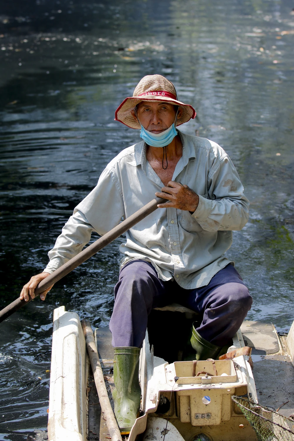 Mỗi ngày từ 9 giờ sáng, ông Cường và anh Âu lại ra con rạch này để “săn” rác. Thuyền bơi đến đâu, họ dùng kẹp và vợt vớt rác đến đó. "Buồn nhất là khi người dân thấy mình bỏ công làm, lại có ý chê bai, nói mình lo chuyện bao đồng, nhưng mình thấy con kênh như vậy cũng không đành lòng nên mới tiếp tục đi làm với chú Cường" - anh Âu chia sẻ.