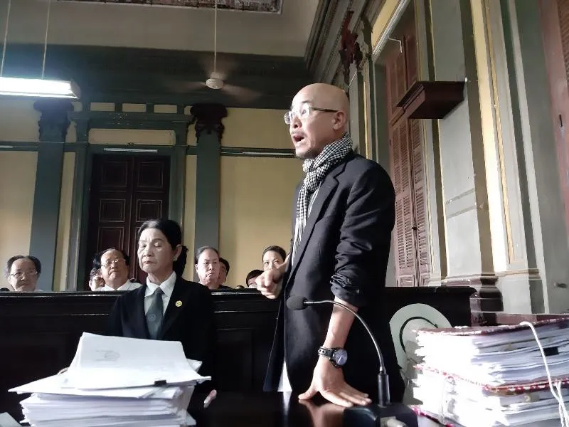 Ông Đặng Lê Nguyên Vũ đang tranh luận tại tòa. Ảnh: VƯƠNG CHUNG