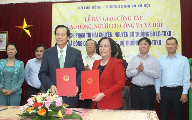 Ngày 14-3, tại Bộ LĐ-TB&XH nguyên Bộ trưởng Bộ LĐ-TB&XH Phạm Thị Hải Chuyền đã chính thức trao nhiệm vụ cho Bộ trưởng Bộ LĐ-TB&XH Đào Ngọc Dung (vừa được Quốc hội phê chuẩn).