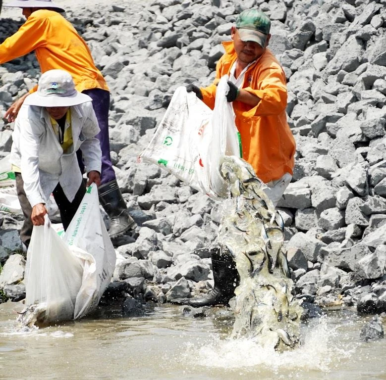 “Mỗi năm, chúng tôi sẽ thả vài triệu con cá để gia tăng nguồn lợi thủy sản và kế sinh nhai cho cộng đồng quanh đây”, ông David Duong nói.
