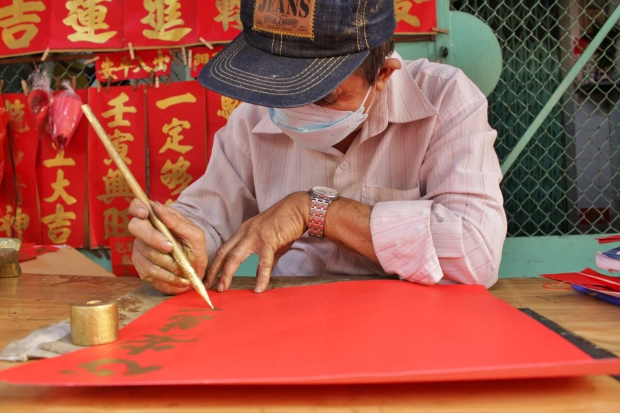 Hơn 50 năm qua, cứ đến dịp cuối năm, ông Huỳnh Trí Cầu (69 tuổi, ngụ quận 11, TP.HCM) lại tất bật bày giấy mực, bút lông trên chiếc bàn nhỏ ở đường Trần Quý, quận 11.
