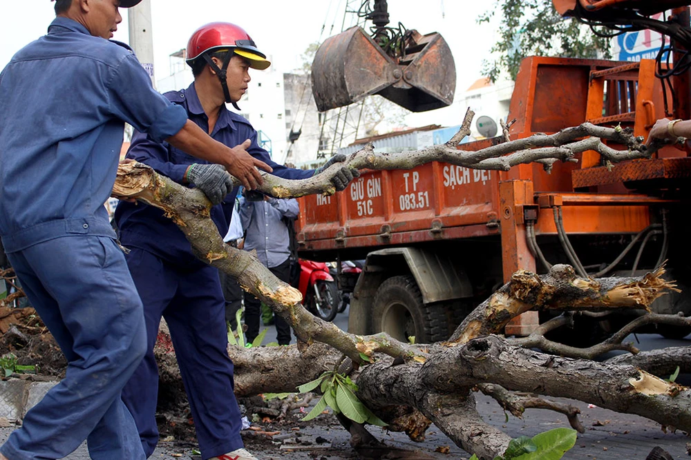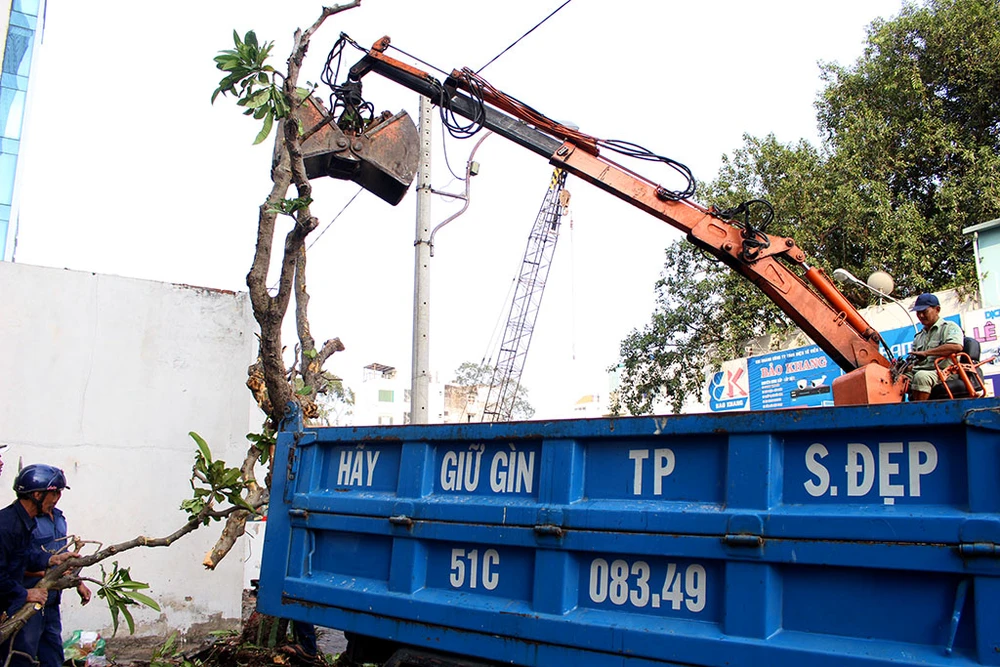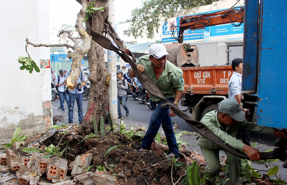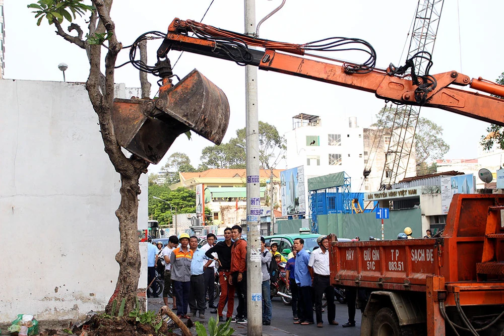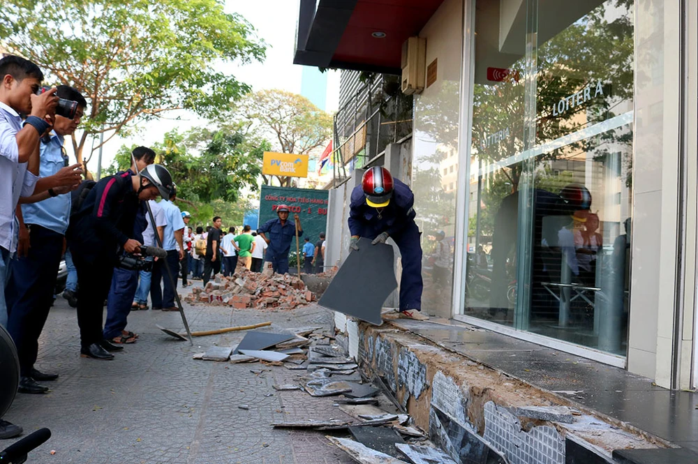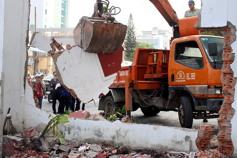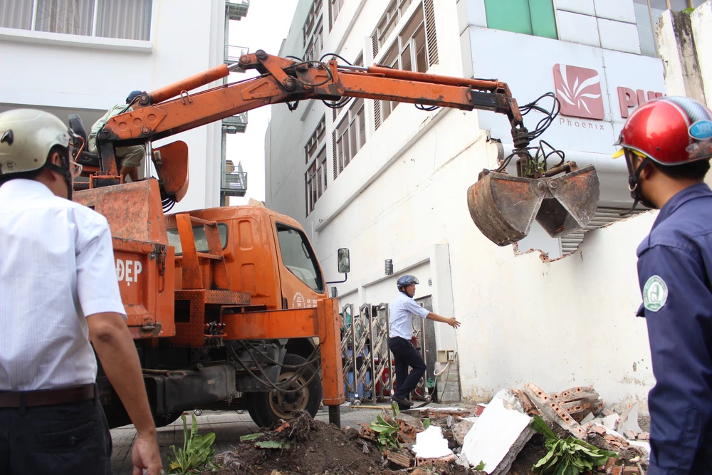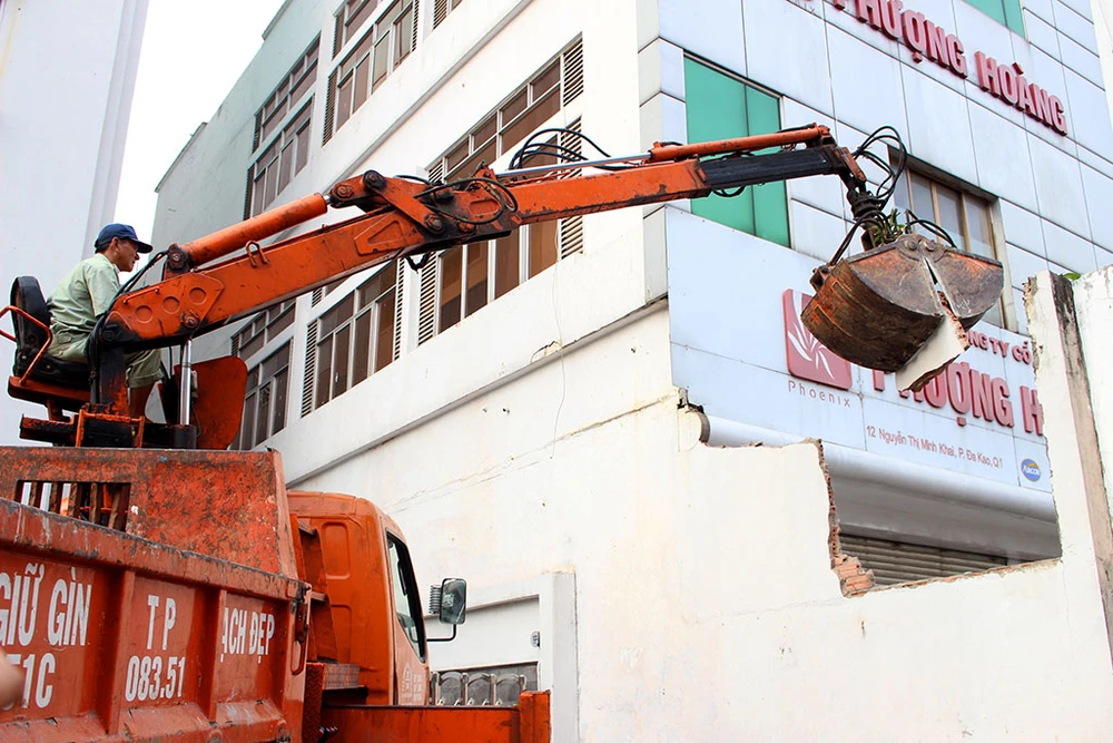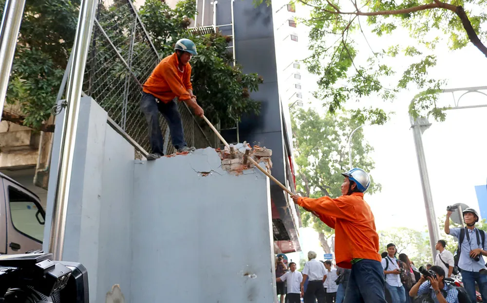 Đập bỏ bức tường trước công ty Phượng Hoàng, số 13 Nguyễn Thị Minh Khai, quận 1