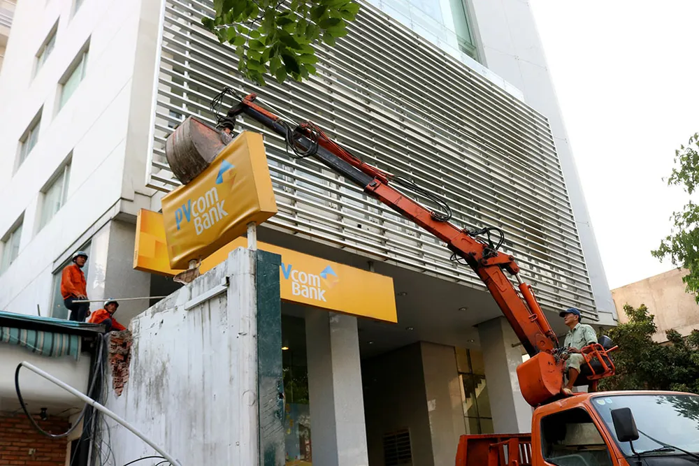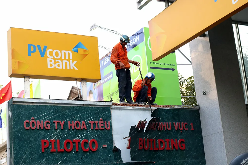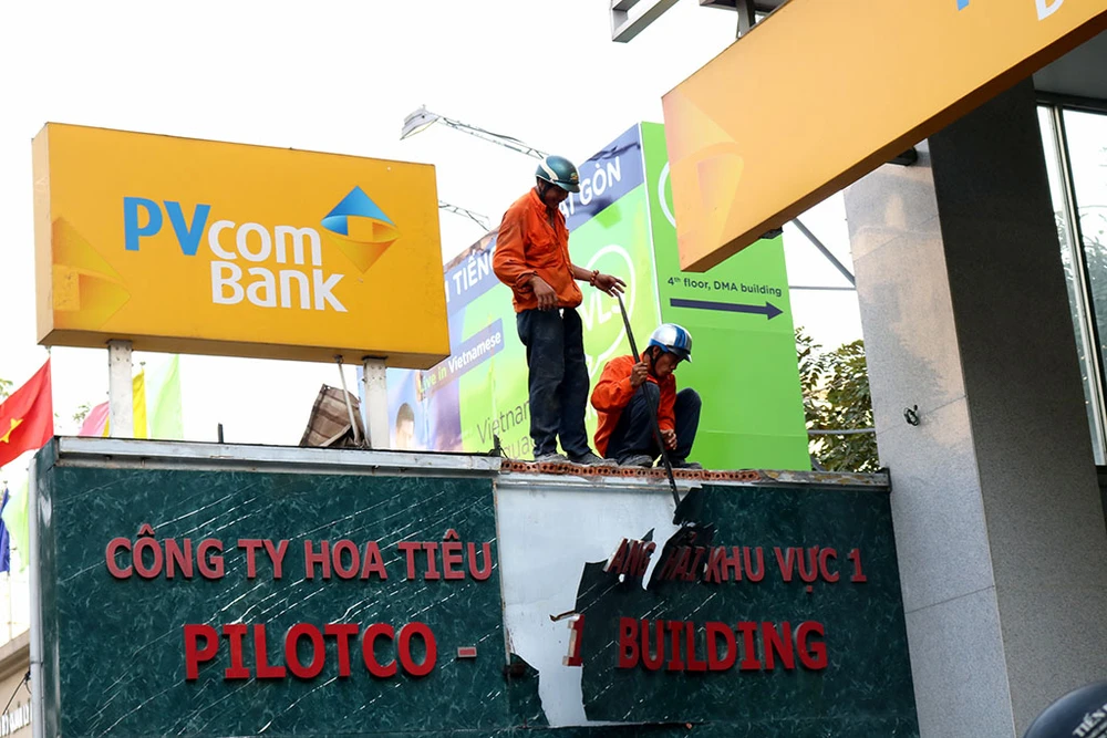 Ông Đoàn Ngọc Hải cho đập tbức ường ở trước tòa nhà PVComBank.