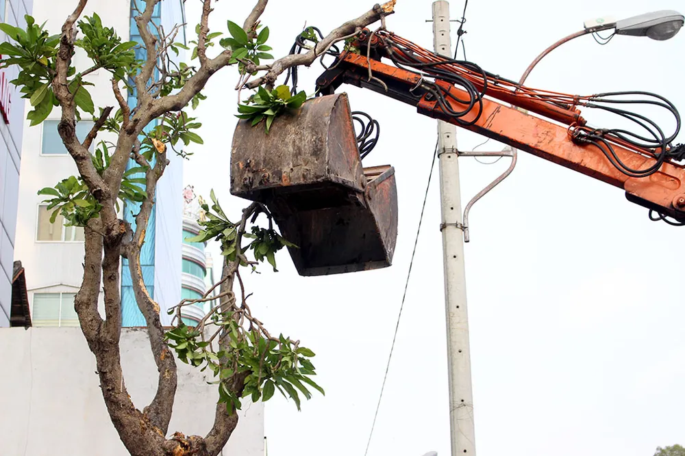 Kế đến, ông Hải cho dỡ bồn cây trước tòa nhà của Bộ Công Thương