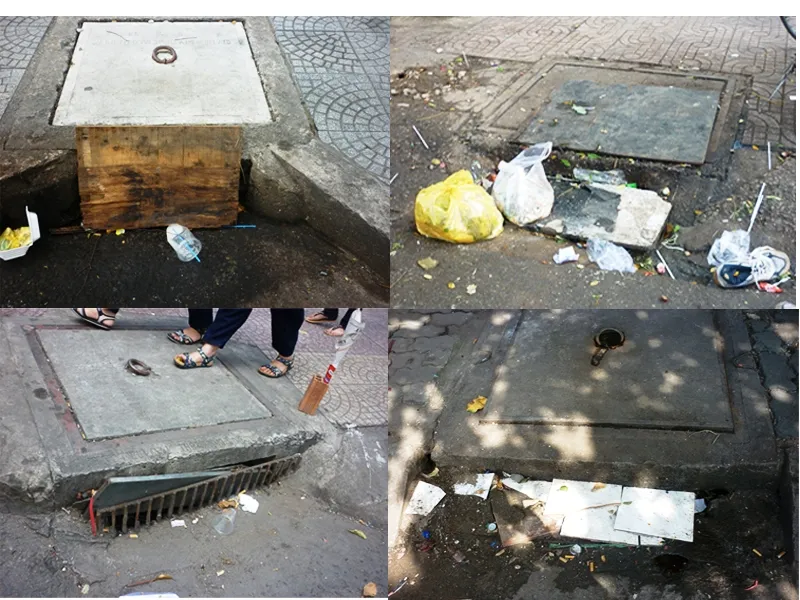 Tình trạng xả rác, láp bít các miệng thu nước trên địa bàn quận 1 cũng khá nhiều. UBND quận 1 đồng ý cho vẽ tranh trang trí trên nắp cống để tuyên truyền bảo vệ môi trường, tạo mỹ quan đô thị. Ảnh: TH.X