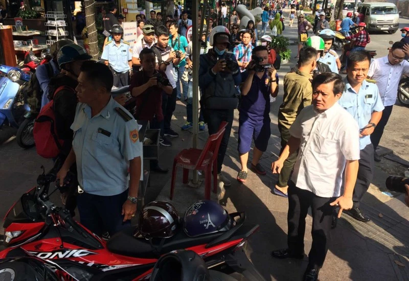Theo ông Hải, Phó Chủ tịch phường Tân Định “chưa hoàn thành nhiệm vụ được giao”. Cụ thể là không xử lý dứt điểm các bãi xe không phép, các cầu thang dẫn bằng sắt, các quán nhậu bày ô dù, bàn ghế lấn chiếm vỉa hè, lòng lề đường trên tuyến đường Trần Quang Khải, Hoàng Sa, Trần Nhật Duật…