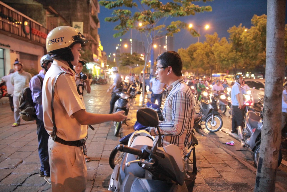 Người dân lái xe trên vỉa hè cũng bị ông Đoàn Ngọc Hải yêu cầu CSGT lập biên bản xử phạt.