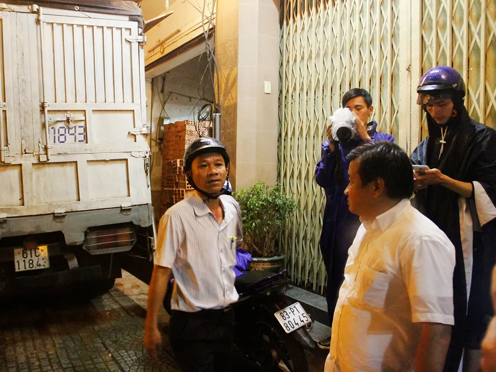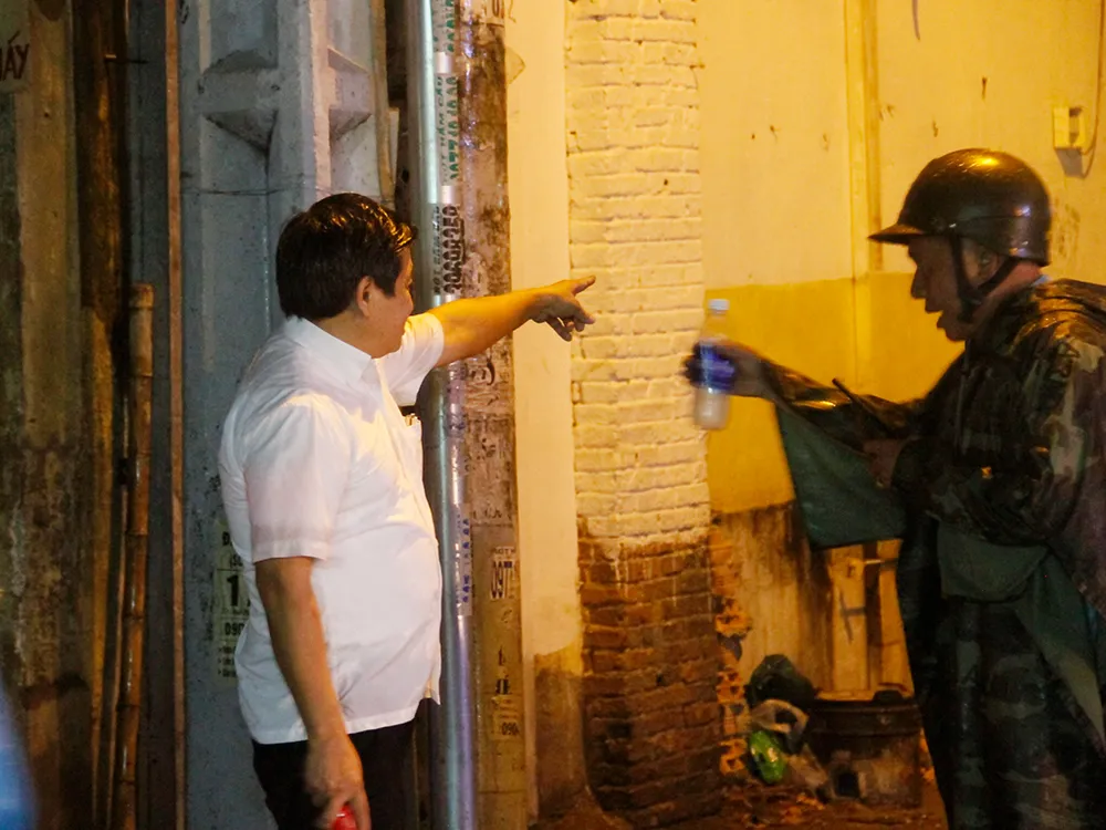 Mặc dù trời mưa, phó chủ tịch quận 1 vẫn xuống xe chỉ đạo cấp dưới làm việc. Ảnh: NGUYỄN TÂN