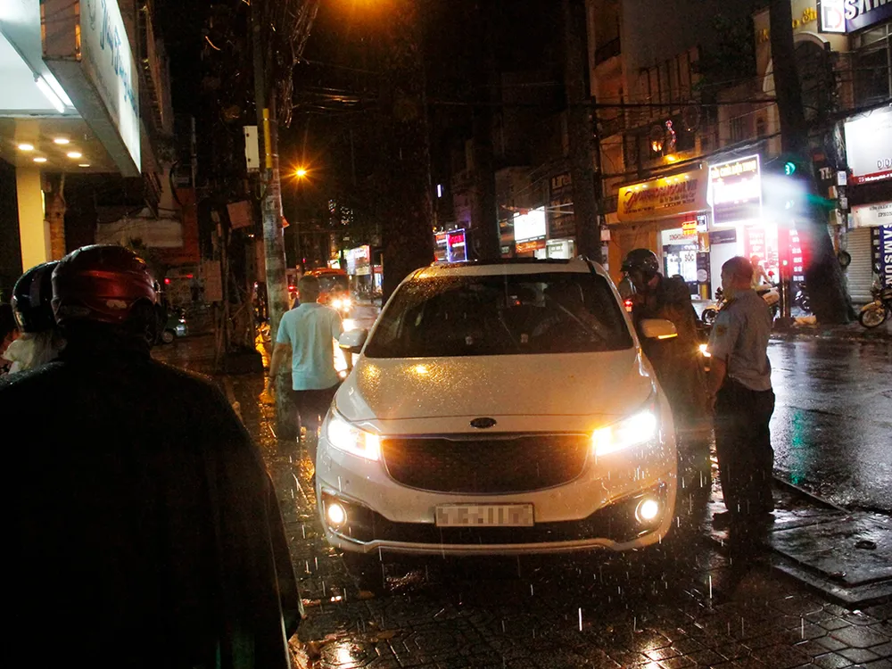 Đôi nam nữ chủ xe sau đó chạy tới xin được xử phạt tại chỗ nhưng lúc này xe đã được niêm phong chuẩn bị cẩu về UBND phường Tân Định. “Tôi và đoàn liên ngành đã đợi ở đây rất lâu, tóc ướt hết. Với lỗi như vậy ở nước ngoài người ta phạt rất nặng, các bạn là những người trẻ, dễ thương và có văn hóa nên chấp hành…” - ông Hải nói.