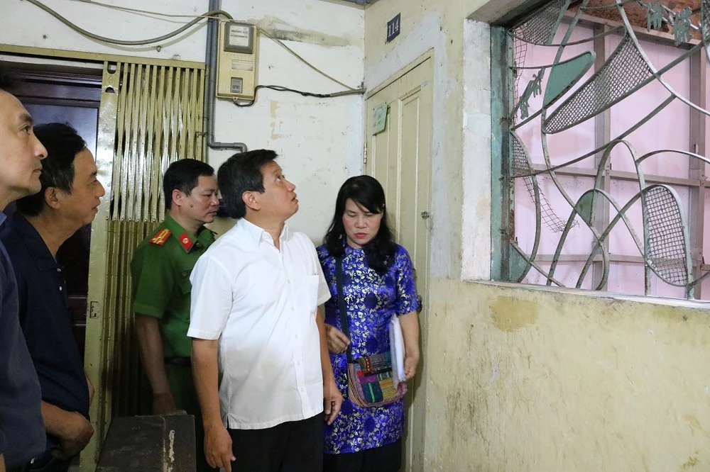 Ông cùng đoàn kiểm tra đi sâu vào bên trong chung cư để xem xét tình trạng, nguy cơ cháy nổ.