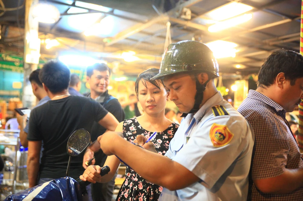Chủ quán nhậu trên đường Hoàng Sa ra ghi nhận biên bản.