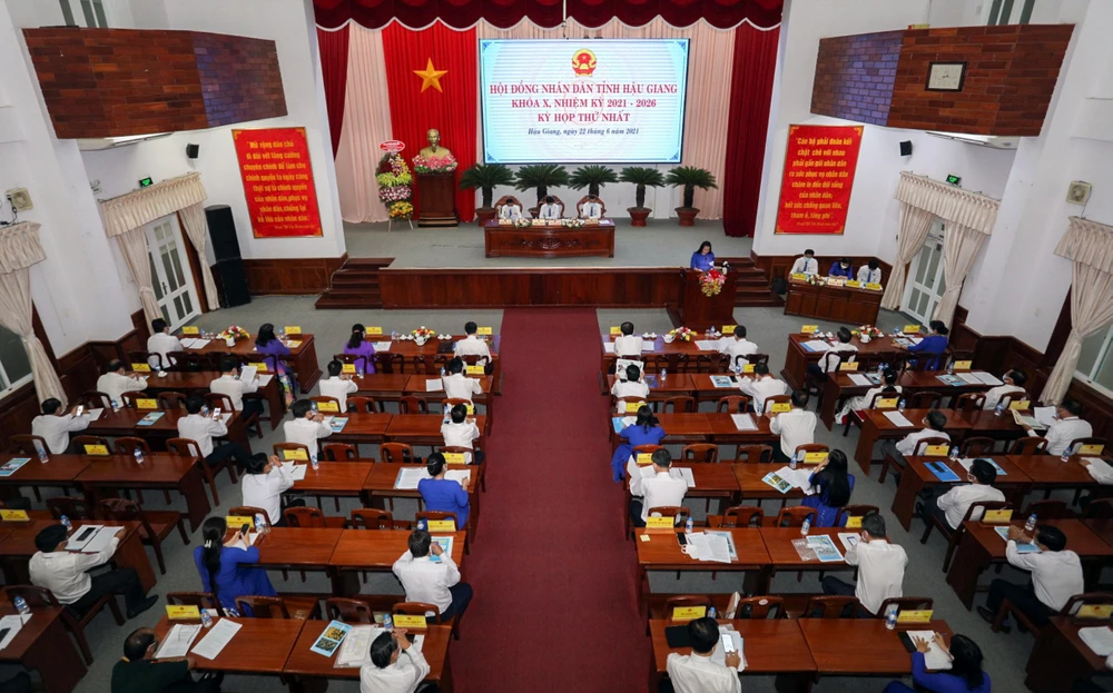 Quang cảnh kỳ họp thứ nhất HĐND tỉnh Hậu Giang khóa X, nhiệm kỳ 2021-2026. Ảnh: KHƯƠNG PHẠM