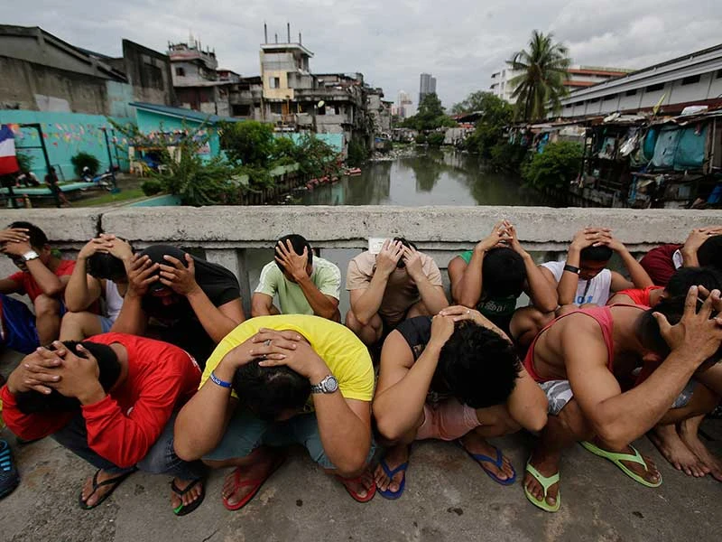Những người tình nghi sử dụng và mua bán ma túy ở Philippines. Ảnh: PA