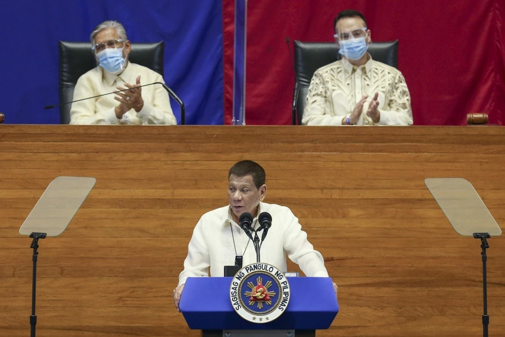 Tổng thống Philippines Rodrigo Duterte đọc bài phát biểu Thông điệp quốc gia hôm 27-7. Ảnh: AP