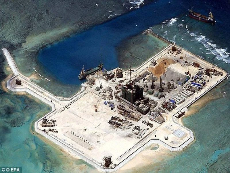 Đảo nhân tạo Trung Quốc xây trái phép trên Biển Đông. Ảnh: EPA
