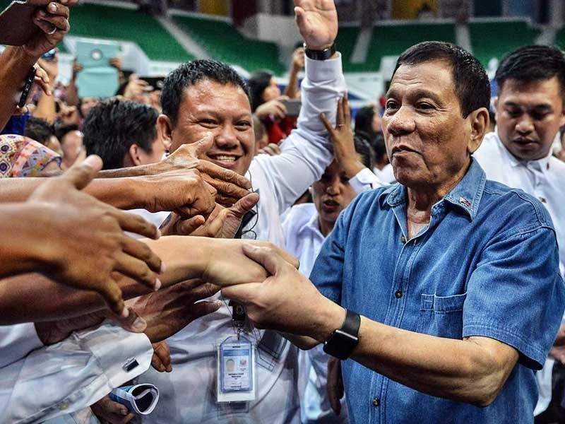Tổng thống Duterte gặp gỡ các công dân Philippines tại Brunei ngày 16-10. Ảnh: AP