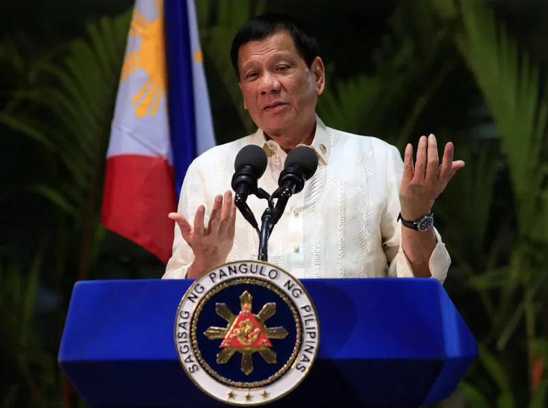 Ông Duterte trong cuộc họp báo tại sân bay quốc tế Manila, Philippines hôm 23-3. Ảnh: REUTERS.
