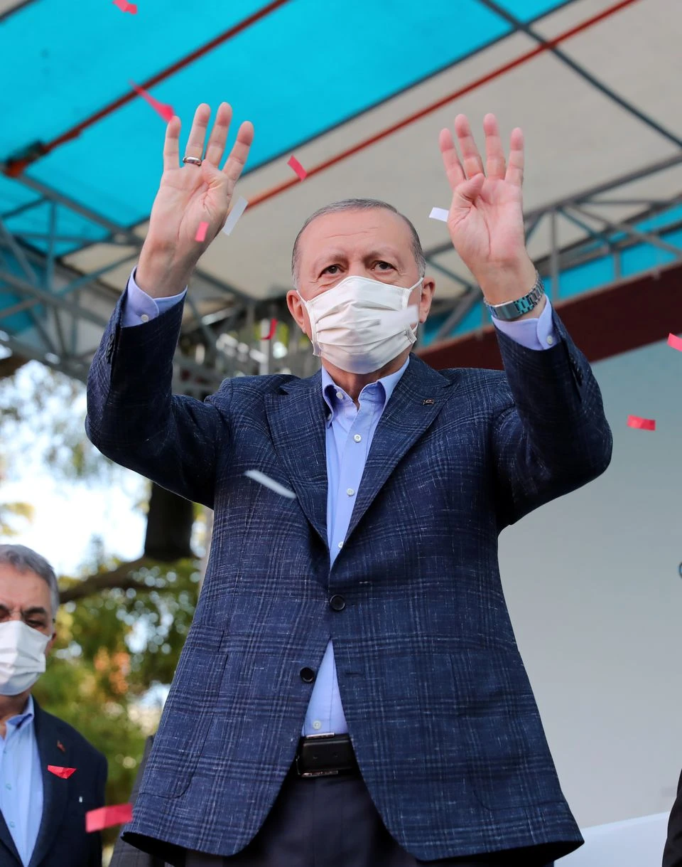 Tổng thống Thổ Nhĩ Kỳ Tayyip Erdogan vẫy tay chào những người ủng hộ ông sau bài phát biểu tại Eskisehir, ngày 23-10. Ảnh: REUTERS
