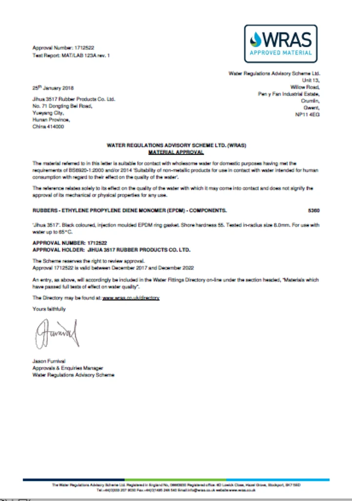 Chứng chỉ WRAS gioăng.