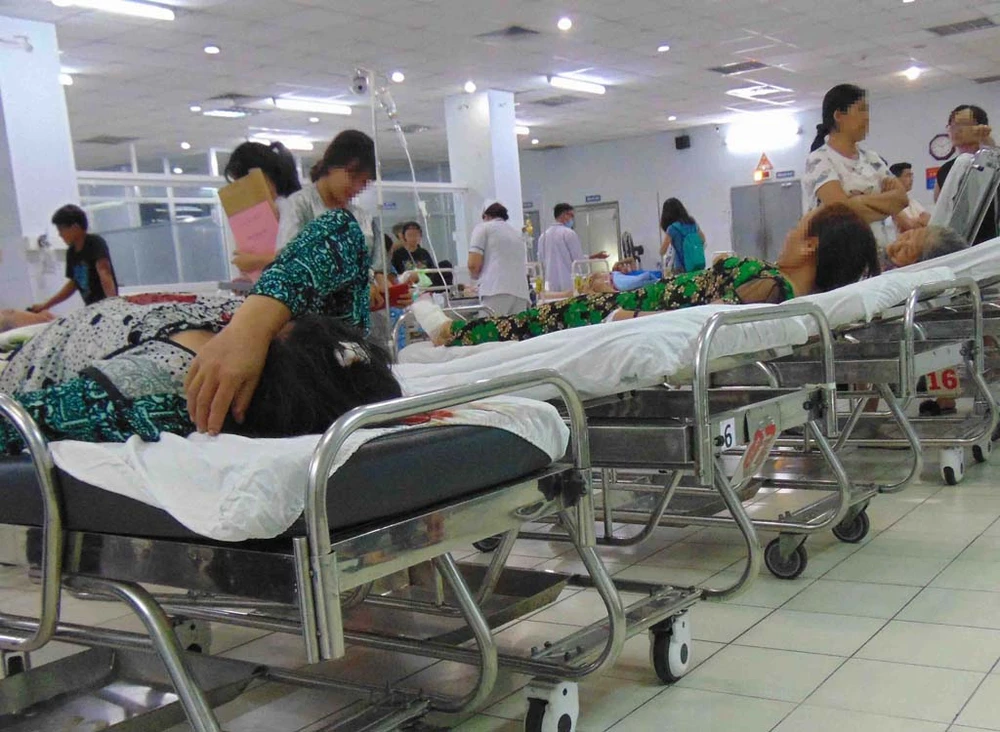 Ba bà và một ông lớn tuổi nằm ở khu vực điều trị tai nạn. Ảnh: TRẦN NGỌC