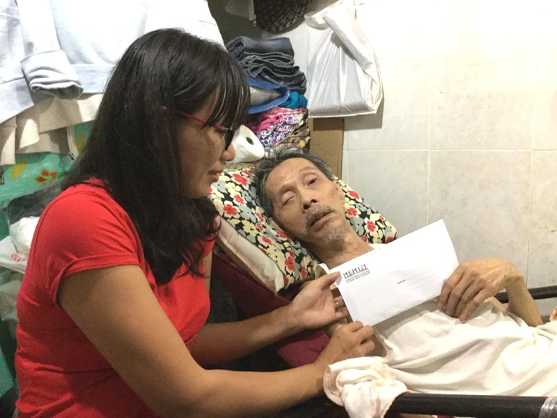 Ông Nguyễn Duy Hải (62 tuổi) trước đây là một công nhân bảo trì cho công ty may ở quận Bình Tân. Sau khi ly hôn vợ, ông không còn người thân. Ông thương người phụ nữ tên Hà Túy Nga làm cùng công ty nhưng chưa tổ chức được lễ cưới thì ông Hải bị đột quỵ, nằm liệt giường, không nói được. Bao nhiêu tiền bạc của ông, bà ấy dành dụm đều lấy ra chạy chữa để giành lại sự sống cho ông. Kinh tế gia đình đến nay đã kiệt quệ.
