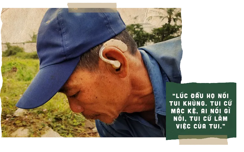 Tháo đôi găng tay, châm điếu thuốc giữa giờ “giải lao”. Giọng Quảng Nam đặc sệt, ông Thương kể: “Lúc đầu họ nói tôi khùng. Tui cứ mặc kệ, ai nói gì nói, tui cứ làm việc của tui”.