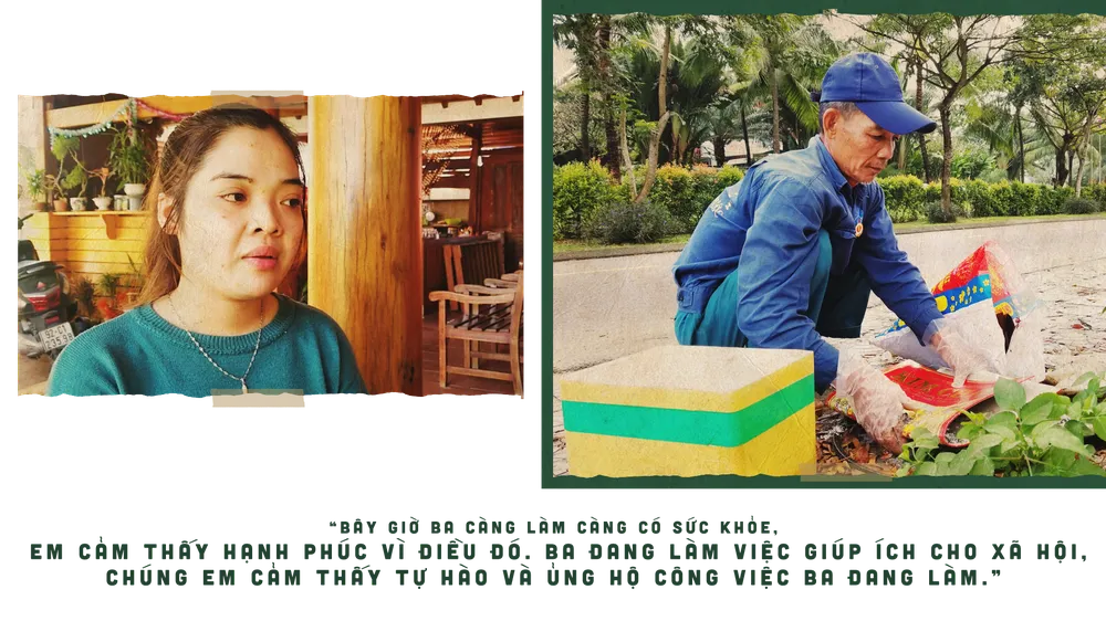 “Ba nói ba không khùng và chứng minh cho tụi em thấy. Ba kể vanh vách nhiều chuyện từ xa xưa mà bọn em, thậm chí là mẹ cũng không nhớ nổi. Ba nói rằng việc mình làm để bảo vệ môi trường”, chị Phương xúc động nói.