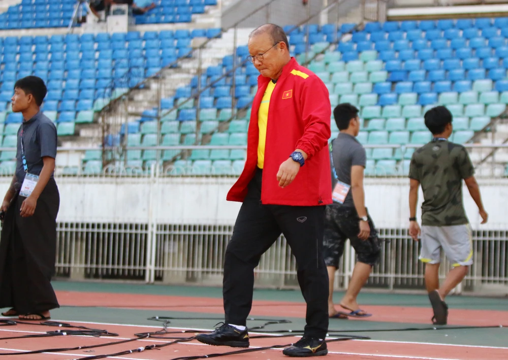 Ông Park cất công đi dạo khắp mặt sân Thuwunna kiểm tra kỹ lưỡng từng khu vực mặt cỏ lẫn định vị địa điểm xung yếu mách nước cho học trò...