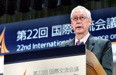 Ông Goh Chok Tong phát biểu tại hội thảo quốc tế ở Tokyo ngày 30-5. Ảnh: NIKKEI ASIAN REVIEW