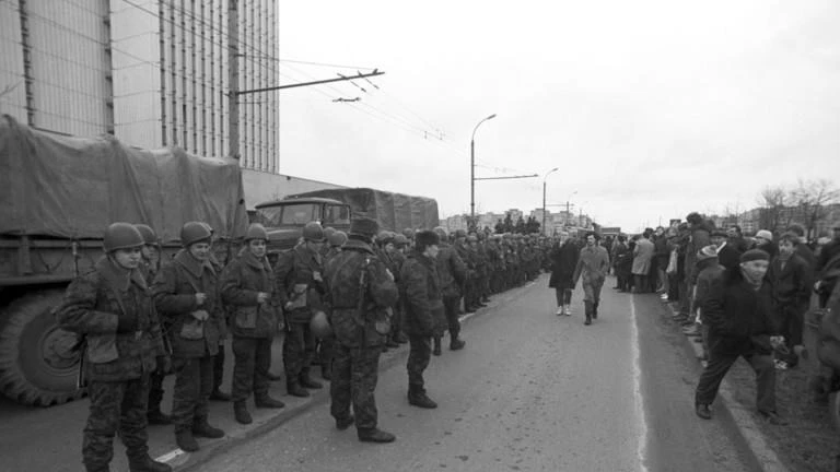 Lực lượng lính nhảy dù có mặt ở thủ đô Vilnius, Lithuania, ngày 11 và 12-1-1991. Ảnh: SPUTNIK