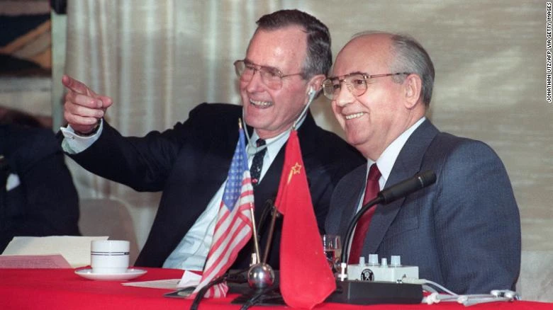 Ông Gorbachev và Tổng thống Mỹ George H.W. Bush khi đó gặp nhau năm 1989 để bàn về những tín hiệu của việc chính thức kết thúc Chiến tranh Lạnh. Ảnh: CNN