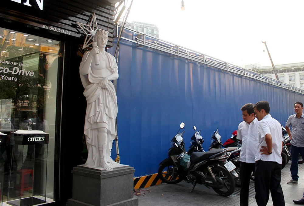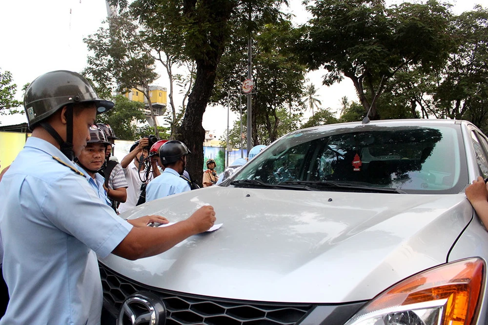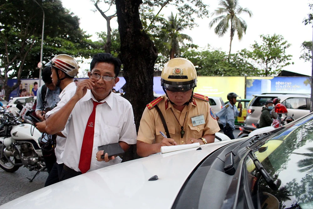 Ra đường Tôn ĐứcThắng, ông Hải lập tức cho xử phạt 3 xe ô tô, 2 taxi đậu trên vỉa hè. Trong đó tài xế của xe ô tô mang BKS: 51A-782.70 trình cả giấy ra vào của Ban Chỉ huy quân canh phòng sân bay Tân Sơn Nhất nhưng ông Hải kiên quyết phạt.
