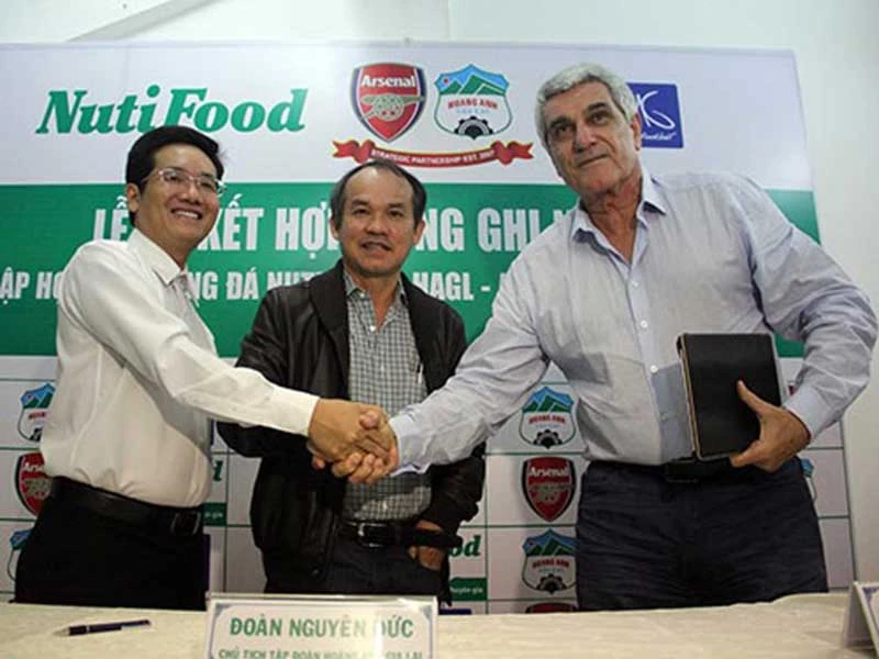 Ông Hải “Nuti” bắt tay với bầu Đức và Arsenal mở học viện. Ảnh: CCT