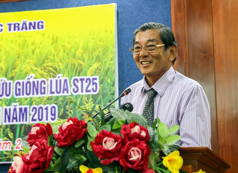Ông Hồ Quang Cua phát biểu tại Lễ khen thưởng và tri ân nhóm nghiên cứu giống lúa ST25 đạt giải gạo ngon nhất thế giới (ngày 25-11-2019). Ảnh: Anh Đào