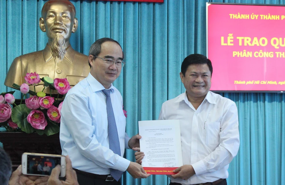 Bí thư Thành ủy Nguyễn Thiện Nhân trao quyết định phân công cho ông Huỳnh Cách Mạng.